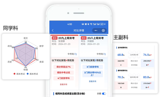 支持本人与本人、本人与他人之间的考试的成绩对比,
