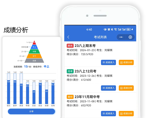 考试成绩分享等功能,方便进行查漏补缺